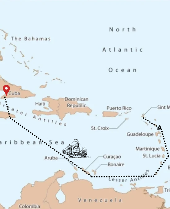 De reis die ik ga doen is reis 26WS5. We vliegen op 20/03/26 vanaf schiphol naar Sint-Maarten, daar begint de reis. We varen eerst langs de bovenwindse eilanden. Dit zijn eilanden als Guadeloupe, Dominica en Grenada. Afhankelijk van de tijd en de wind zullen we ook een paar van deze eilanden bezoeken. Na een tijdje varen we ook langs Curaçao, dit eiland zullen we wellicht bezoeken. Vervolgens is het tijd voor de ship’s takeover, hierbij breng je je zeilvaardigheden in de praktijk om het schip over te nemen! De reis eindigt op Cuba, waar we de Cubaanse cultuur gaan ontdekken en allemaal leuke plekjes zullen bezoeken. Vanaf Cuba vliegen we op 24/04/26 weer terug naar Nederland. Op de slideshow zie je de route van de reis en de eilanden die we (misschien) gaan bezoeken.